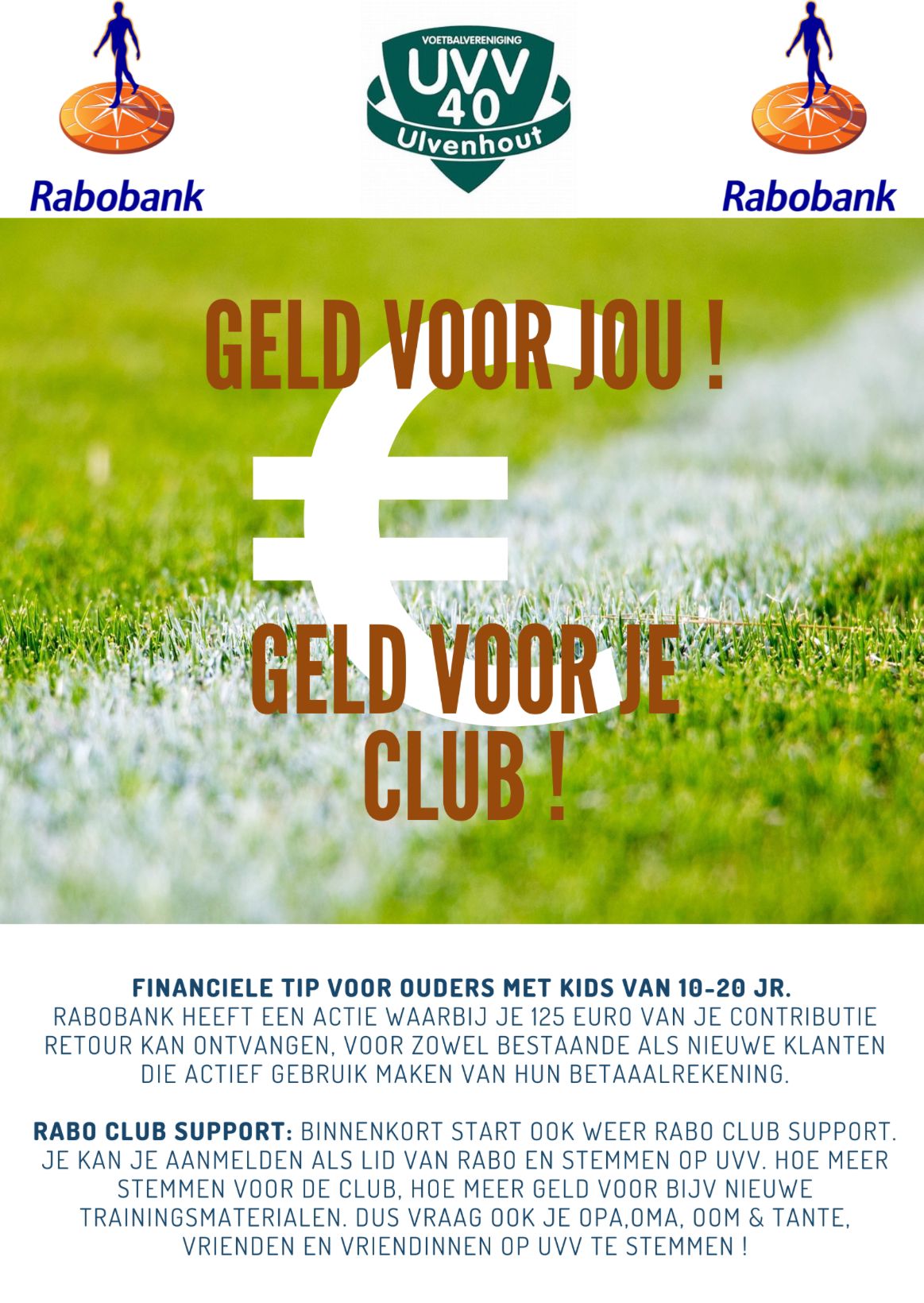 Dus als je het SportCadeau aanvraagt, wordt dan ook meteen lid van de RaboBank, zodat je bij de ClubSupport Actie UVV kan steunen! Dus: